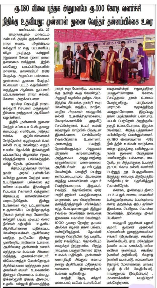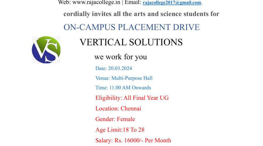 Raja College of Arts & Science (RCAS) is a renowned institution that offers a holistic education to its students. The college is located in a scenic campus with excellent infrastructure and immense facilities, which makes it an ideal place for students to study. The college offers a wide range of courses that cover the qualitative aspects of academia and the technical facets of the industry. This makes it an ideal place for those who want to disseminate the status quo and promulgate a new path for themselves. Every student at RCAS is equipped with knowledge and experience that can be applied in real-time and help to make a significant difference.