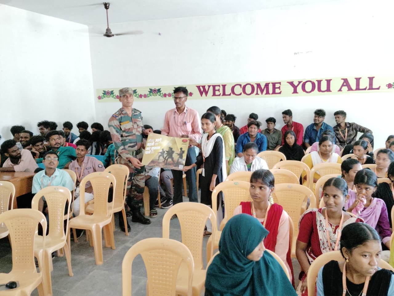 The students listened curiously regarding joining Indian Army. All of the students were given clarified answers by the chief guests. Finally, the Thanksgiving note was presented by Placement coordinator Miss. Narmatha to the chief guests. The chief guests presented us with posters concerning the Agniveer Scheme.